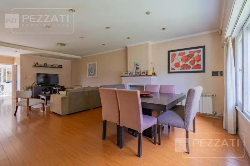 Espacioso living comedor con ventanales hacia el exterior.