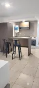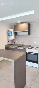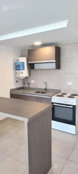 La cocina está integrada y equipada con un termotanque eléctrico, cocina eléctrica y heladera con freezer. Dispone de una barra desayunadora con un mueble nuevo a estrenar, lo que optimiza el uso del espacio.