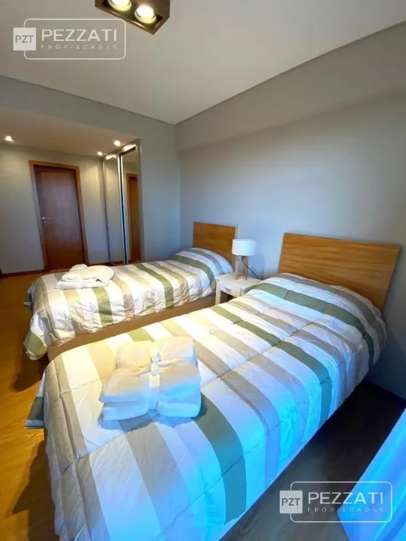 Excelente semipiso de categorìa a metros del mar y Golf. Formosa y A. del Valle. A estrenar. Living al frente con piso de porcelanato. Living al frente con balcòn corrido y con excelente vista. Mucho sol. Cocina con ventilaciòn natural y barra desayunadora. Toilette de recepción. Dos dormitorios en suite ( 1 con vestidor y baño con hidromasaje). Ambos dormitorios cuentan con balcòn al contrafrente desde donde tambièn se aprecia una inmejorable vista. Aberturas externas con DVH, portero visor. Baños con extractor de aire. Calefacciòn por radiadores. Cochera cubierta