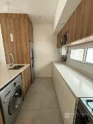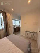 Amplio living con balcón saliente y vista panorámica de la ciudad y vista lateral al mar.Cocina de generosos dimensiones totalmente equipada con comedor integrado.