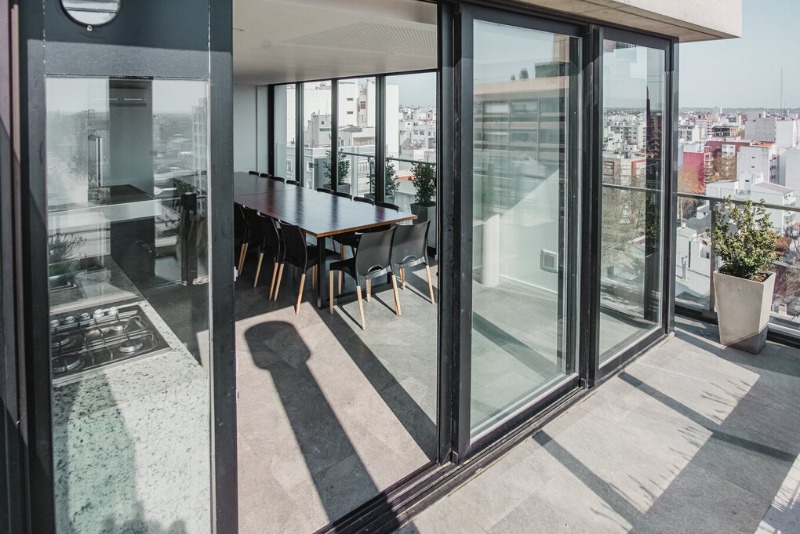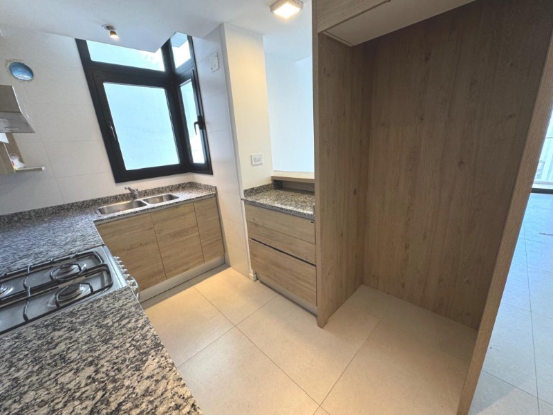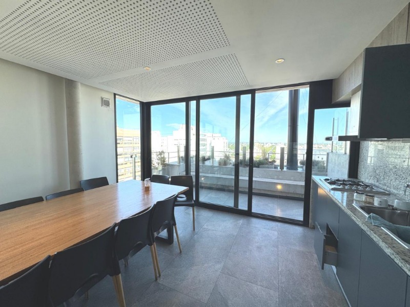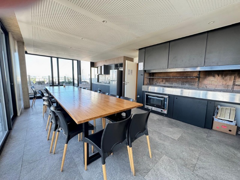 Entre las comodidades se encuentra una cocina integrada al living comedor, equipada con modernos cerramientos de PVC y calefacción por losa radiante.